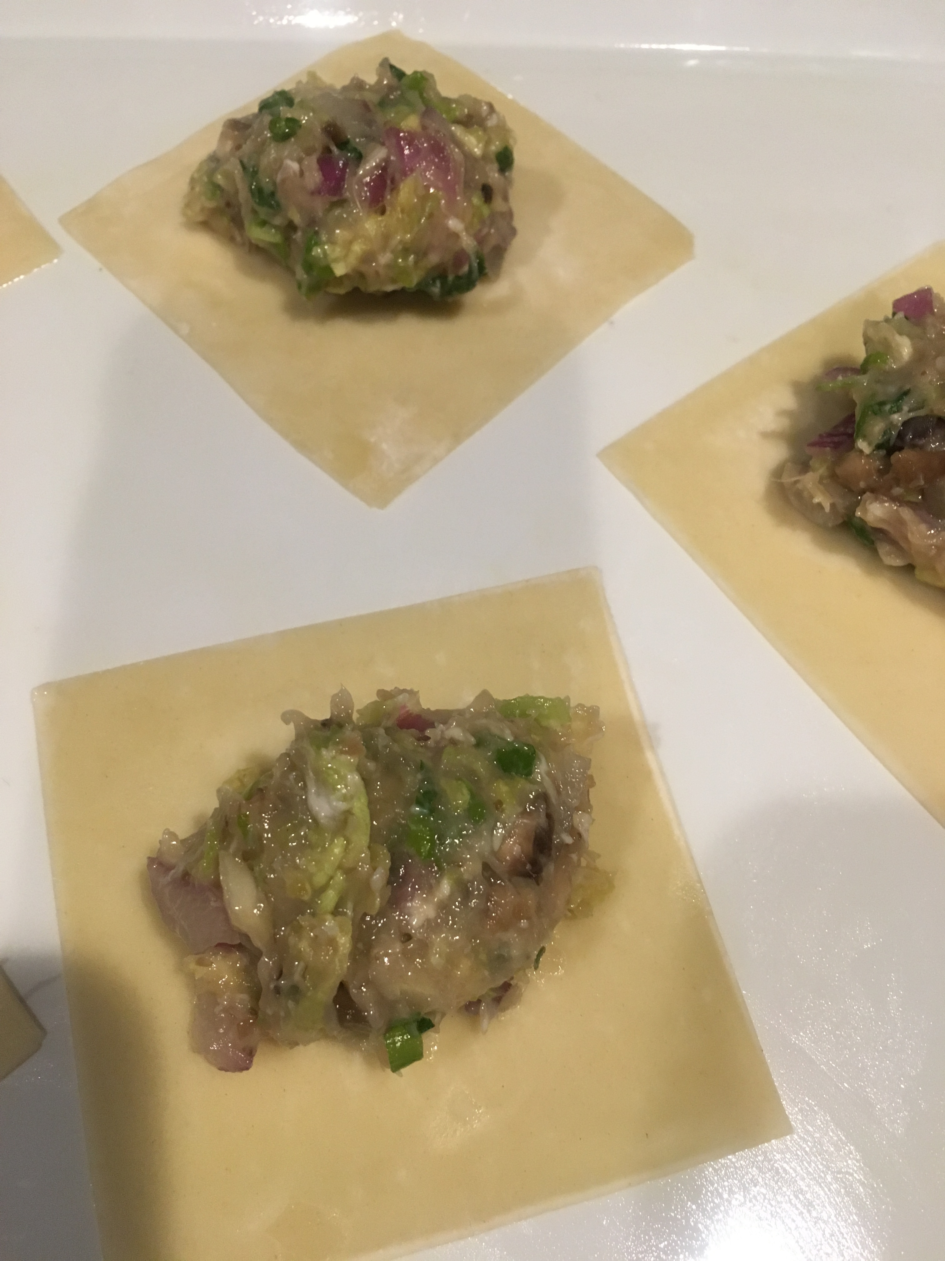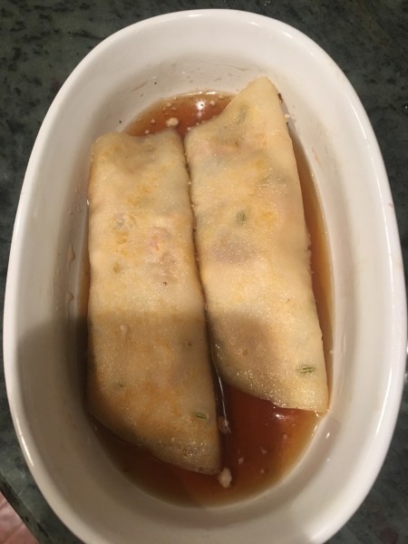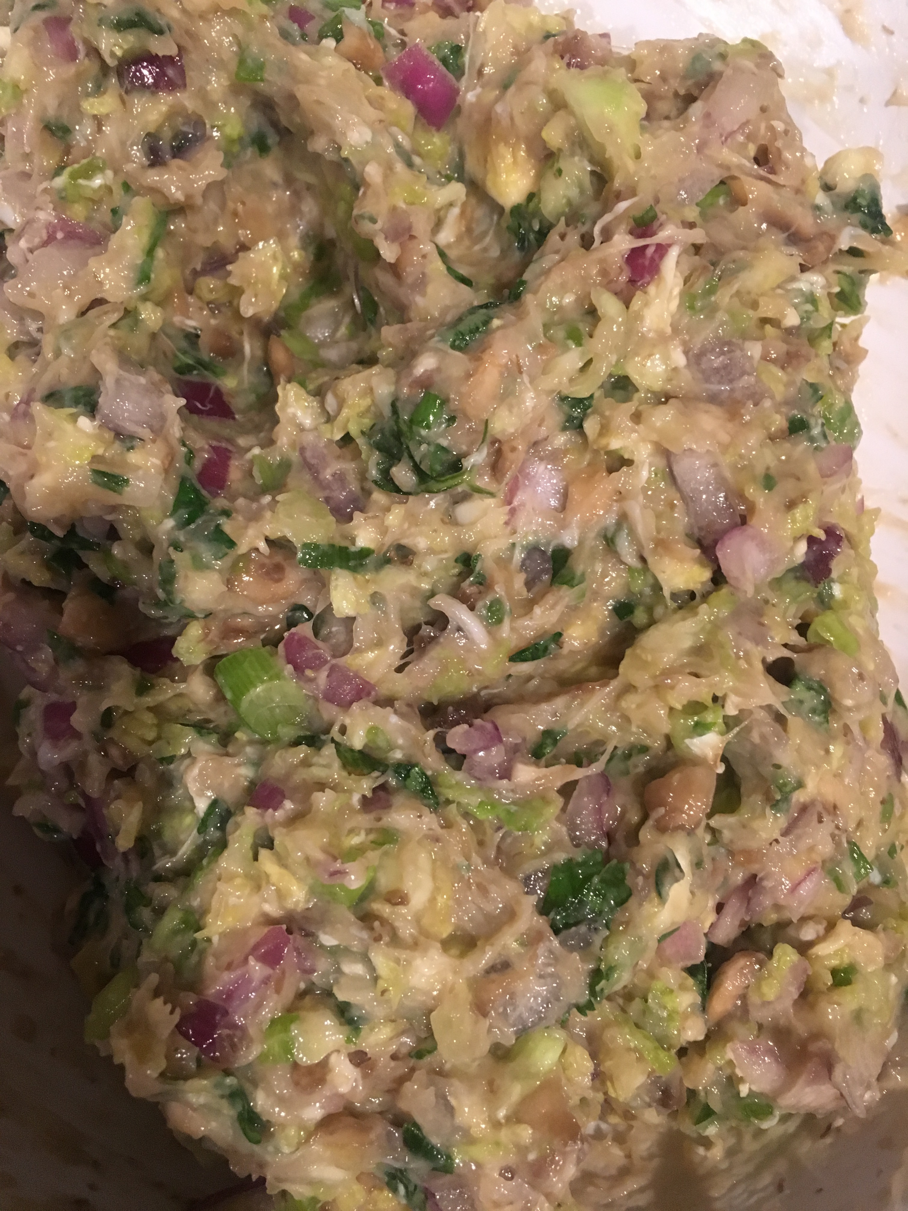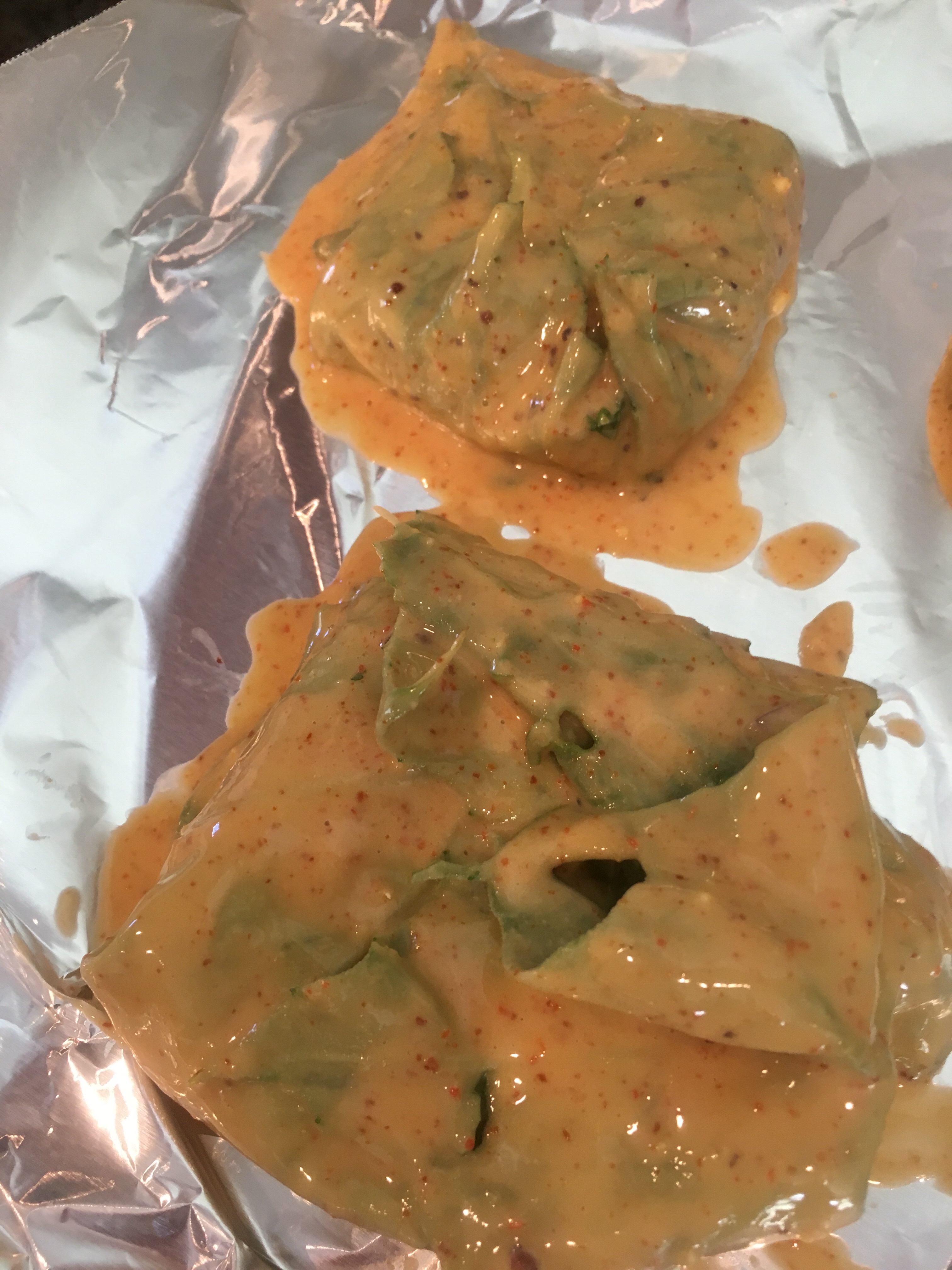 7. Now stuff the shrimp mixture inside the leaf , fold it nicely and dip it inside the batter.