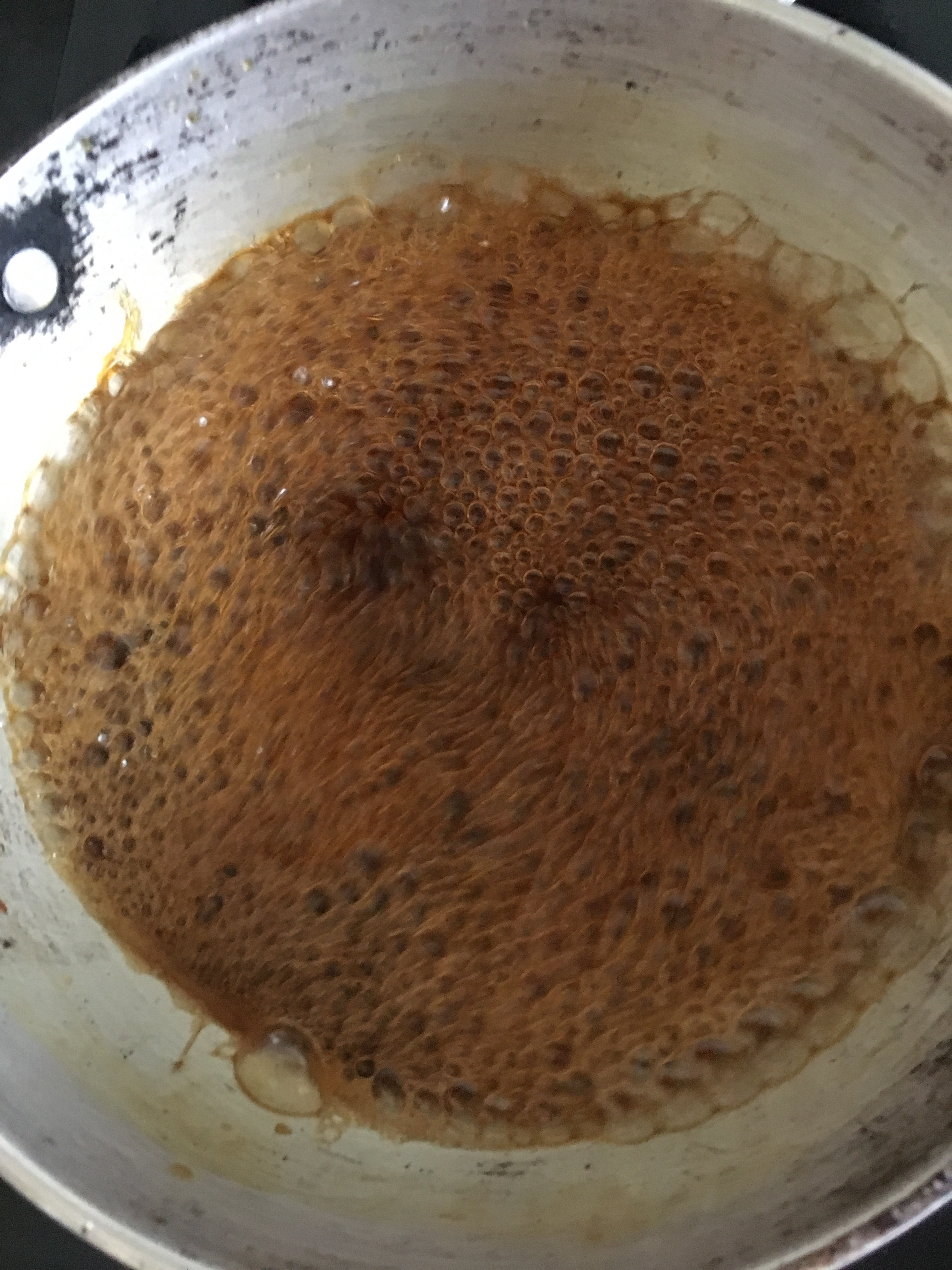 Step 2 :- I used jaggery so melted 1/2 cup jaggery .
